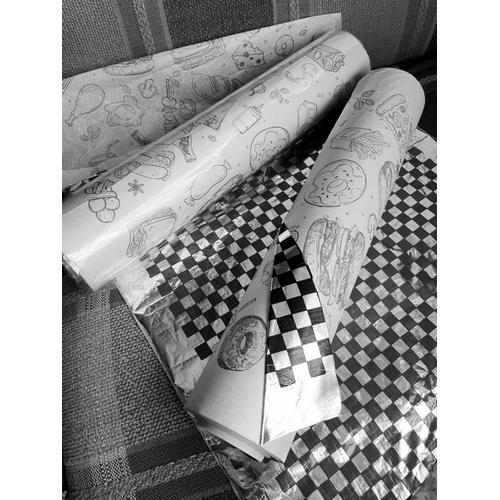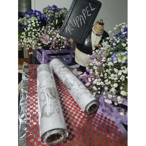 Papel laminado con foil de Aluminio, Térmico y anti grasa.